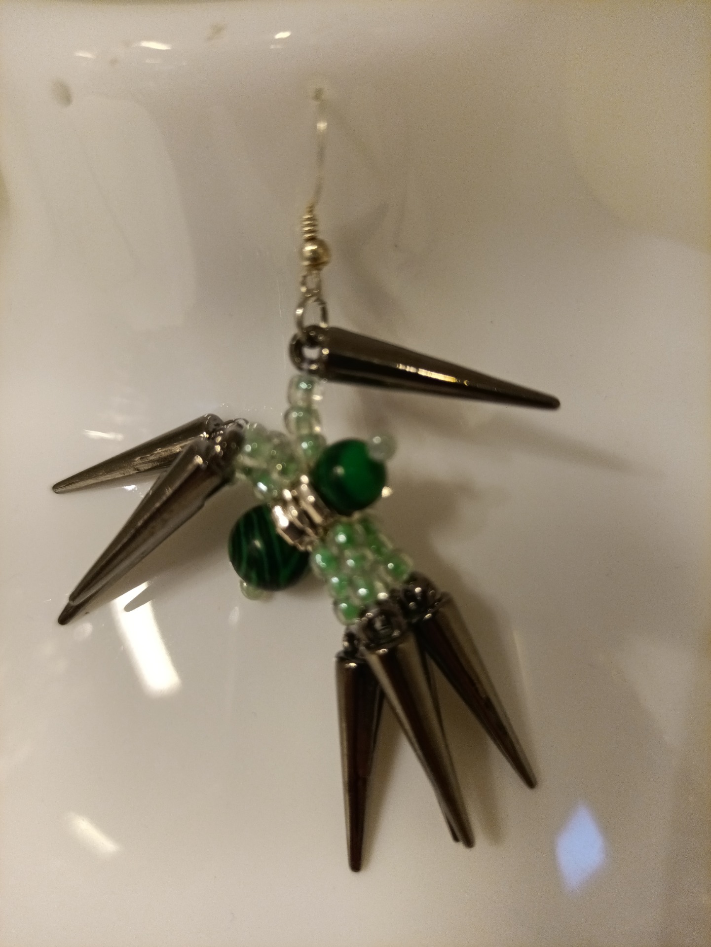 Øredobber med edderkopper laget av perler.