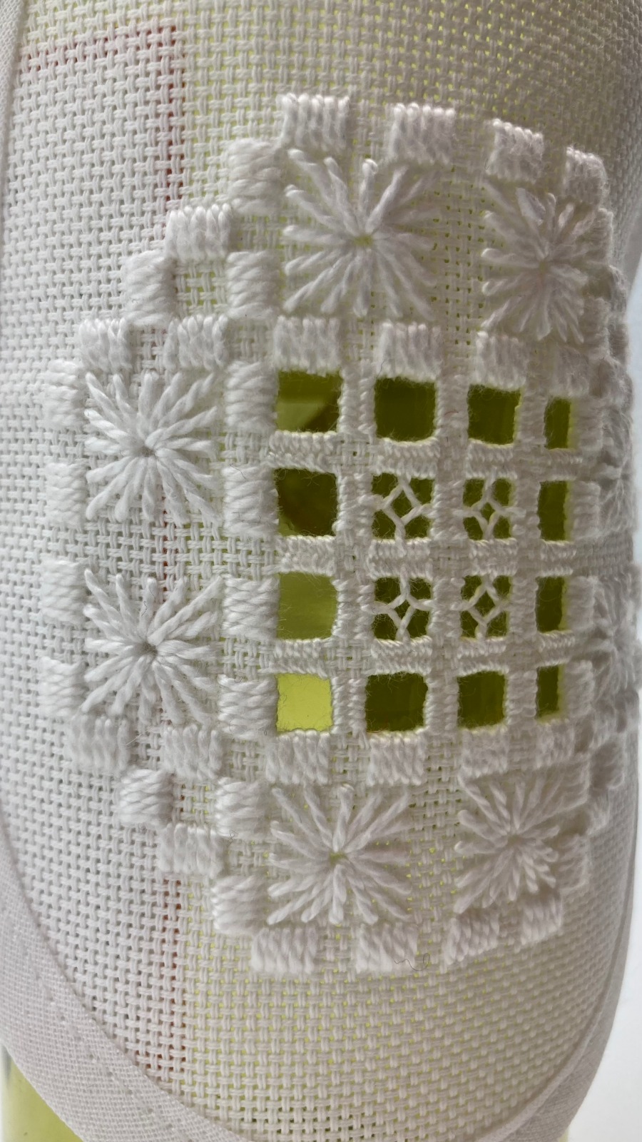 Flaskeforkle/væskestopper laget i hardangersøm. Brodert av Mamma B. NB! Potensiell bestillingsvare. Må forvente to ukers produksjonstid om det ikke finnes noen på lager.