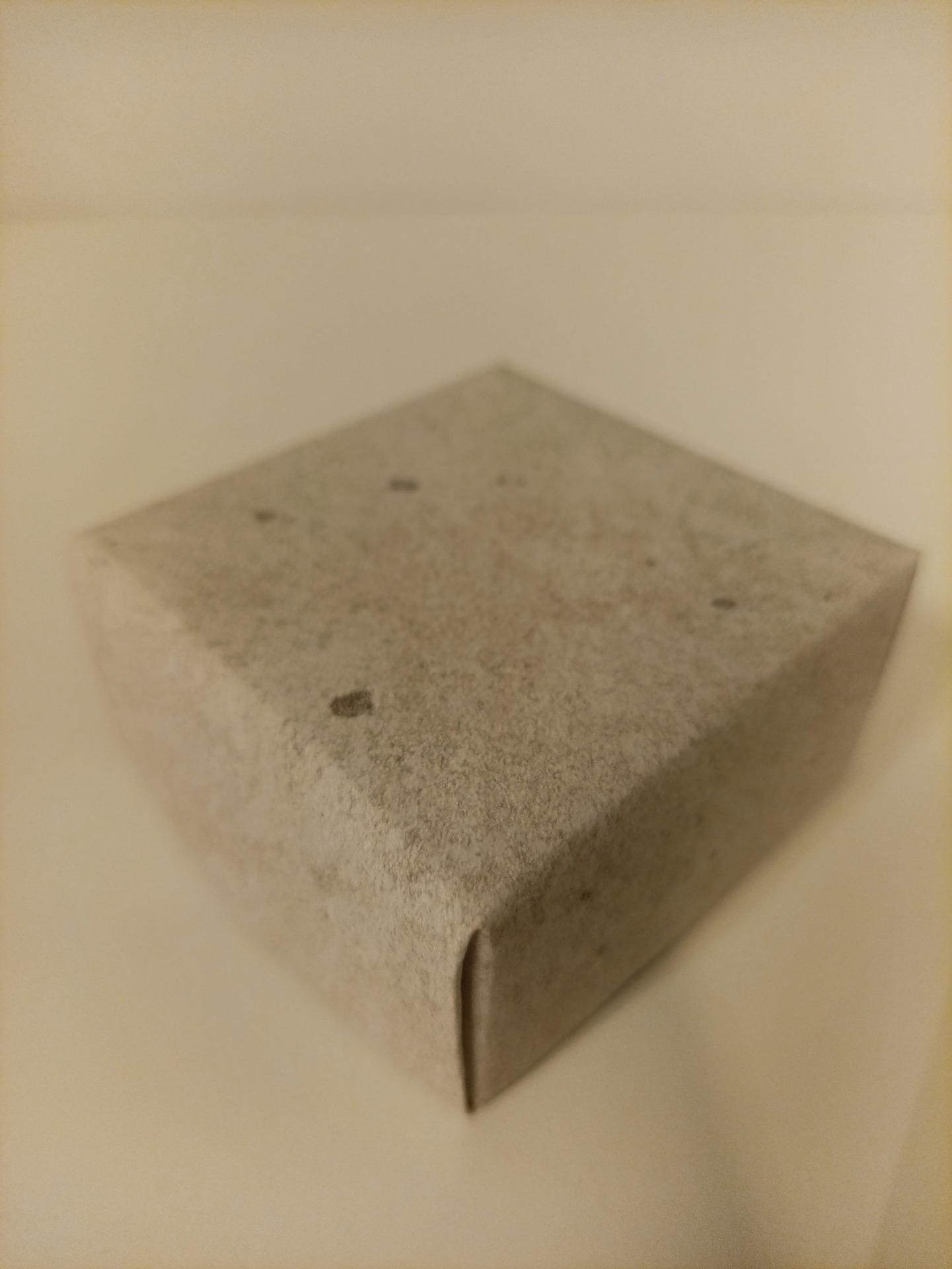 Gaveboks laget i tapetmateriale. Boksene er laget slik at str. 9 passer akkurat oppi 10, str. 8 akkurat oppi 9, og videre. Dette for å kunne spare plass ved eventuelt lagring. Denne boksen er 7x7x3,5 cm.
