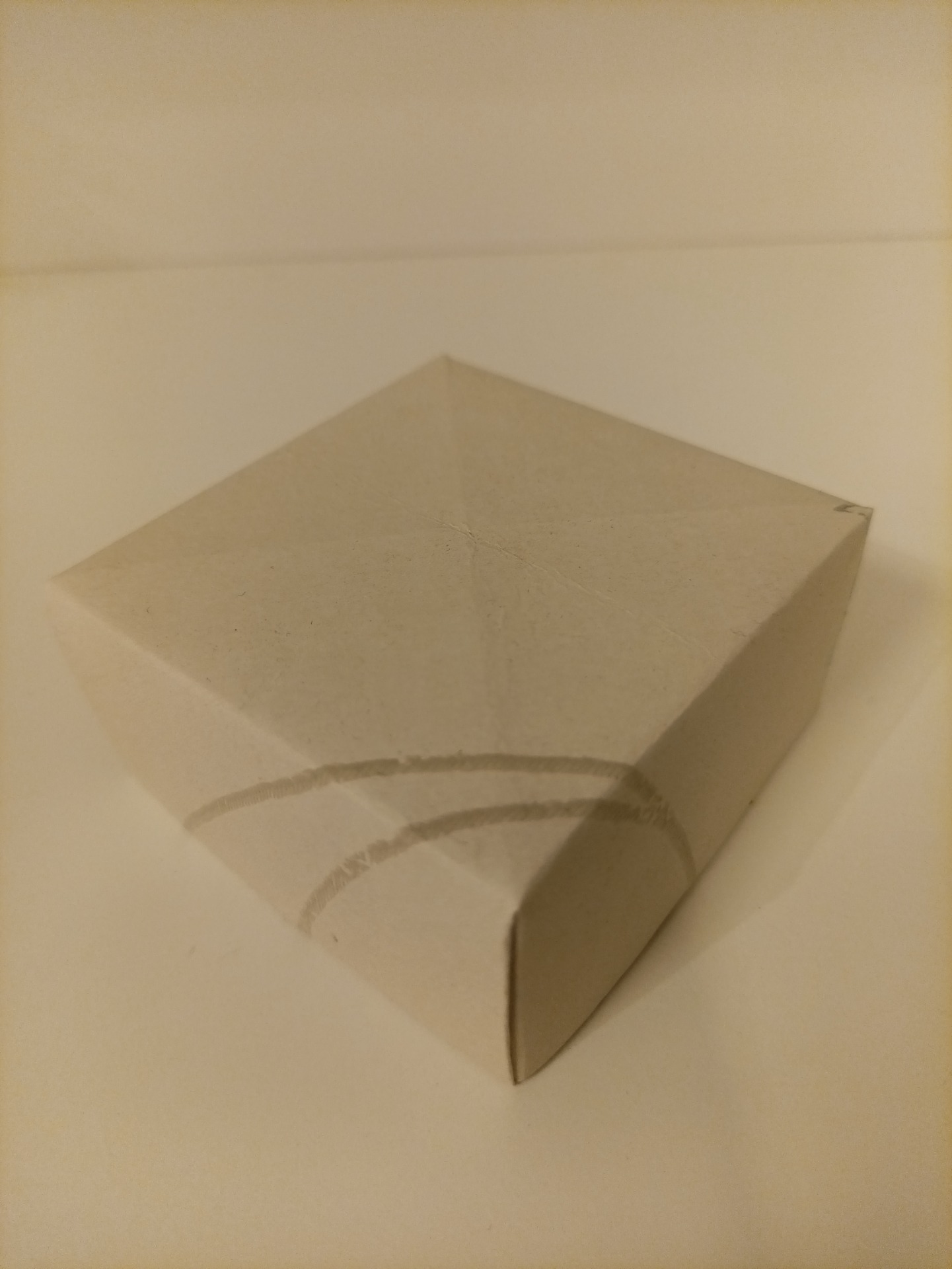 Gaveboks laget i tapetmateriale. Boksene er laget slik at str. 9 passer akkurat oppi 10, str. 8 akkurat oppi 9, og videre. Dette for å kunne spare plass ved eventuelt lagring. Denne boksen er 8x8x4 cm.