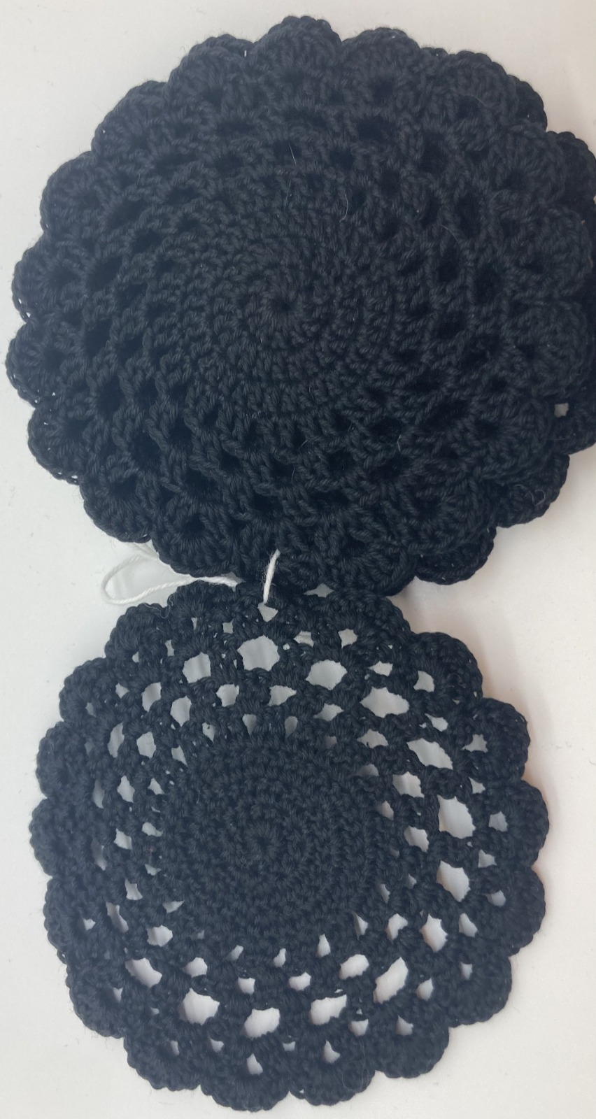 Heklede bordbrikker laget av Mamma B. Det er 6 stykker i hvert sett. NB! Potensiell bestillingsvare. Må forvente to ukers produksjonstid om det ikke finnes noen på lager.