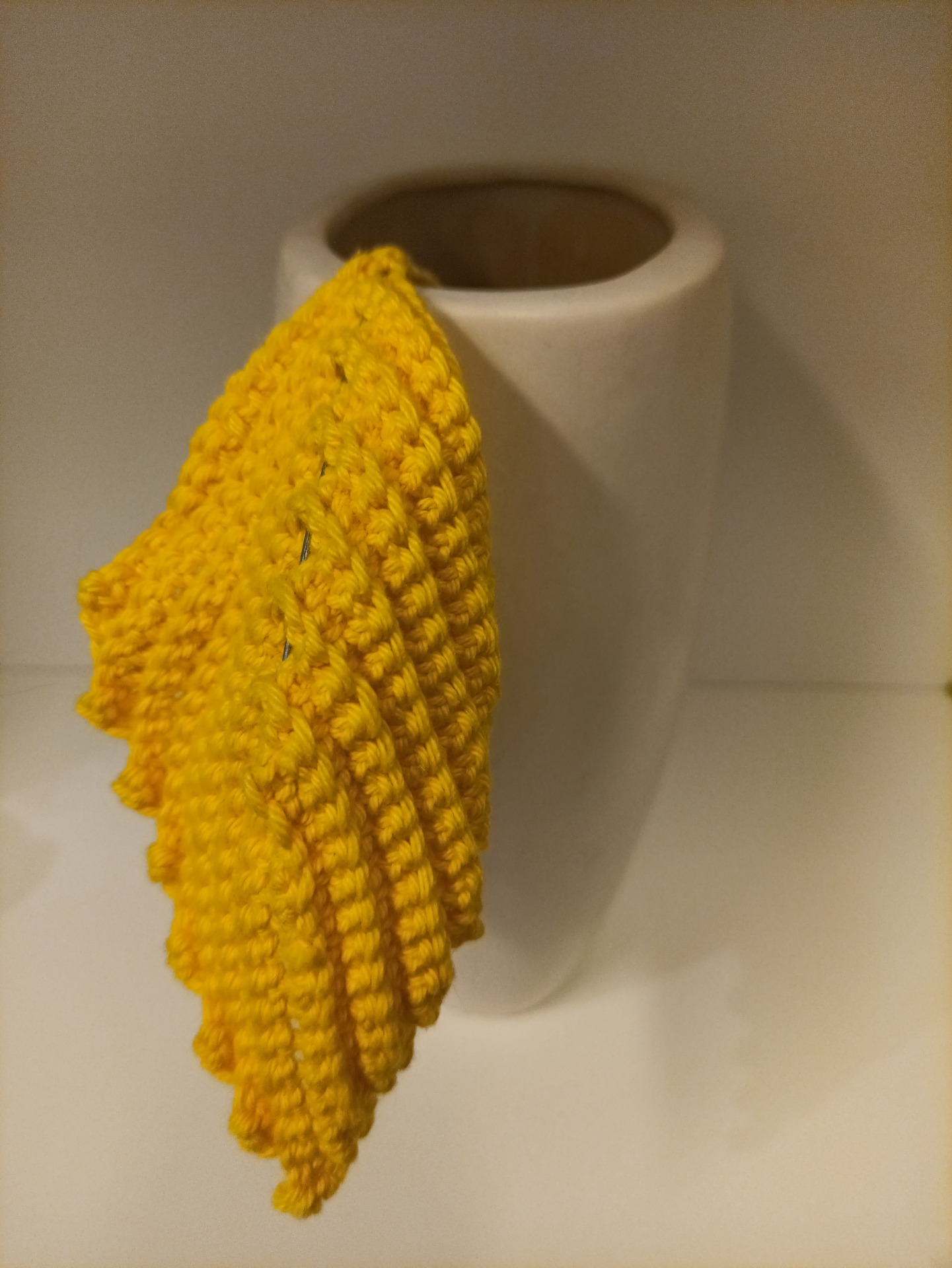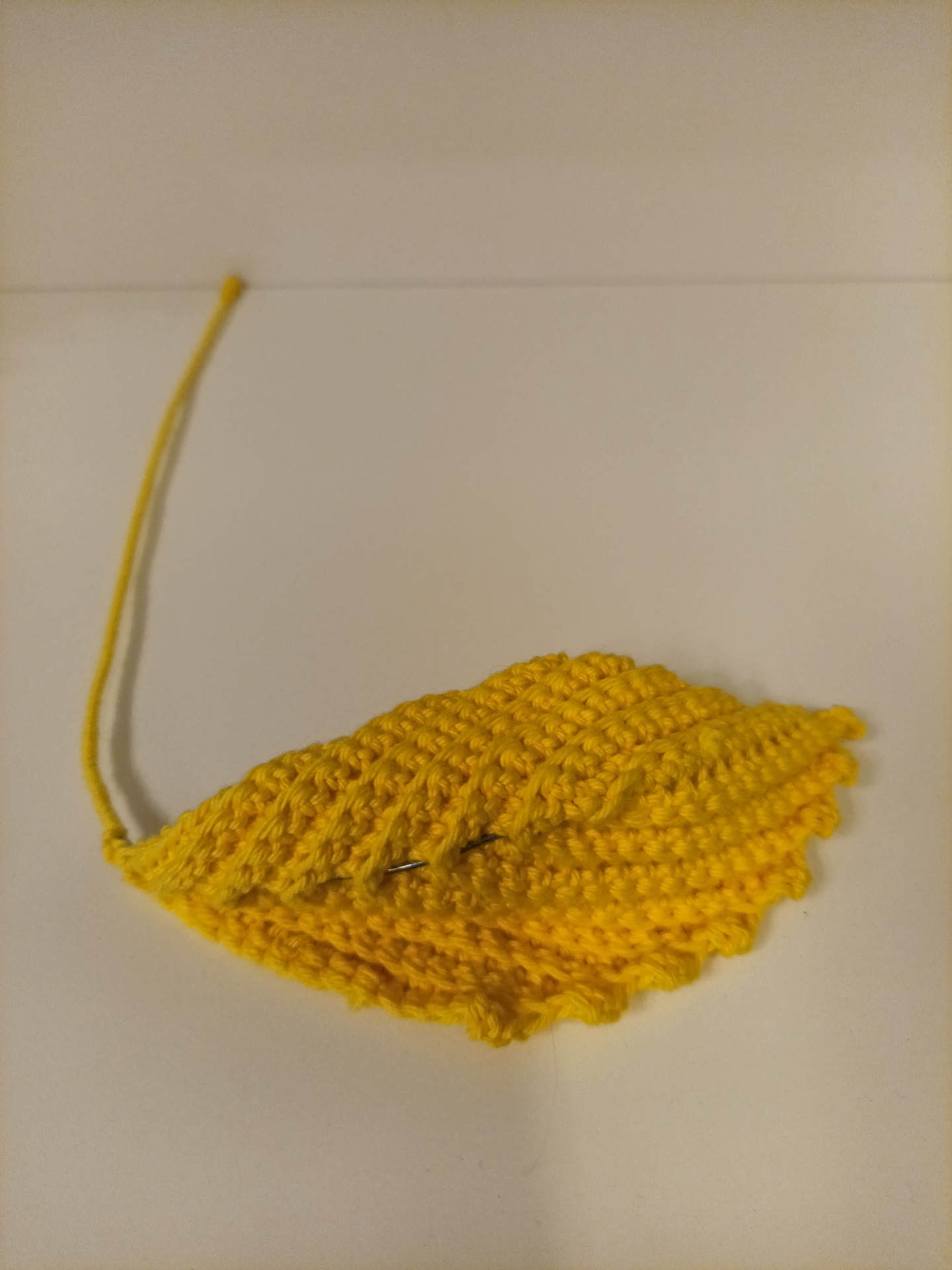 Heklet blad med stilk i garndekket ståltråd. Stilken kan bøyes, og er omtrent 27 cm lang.