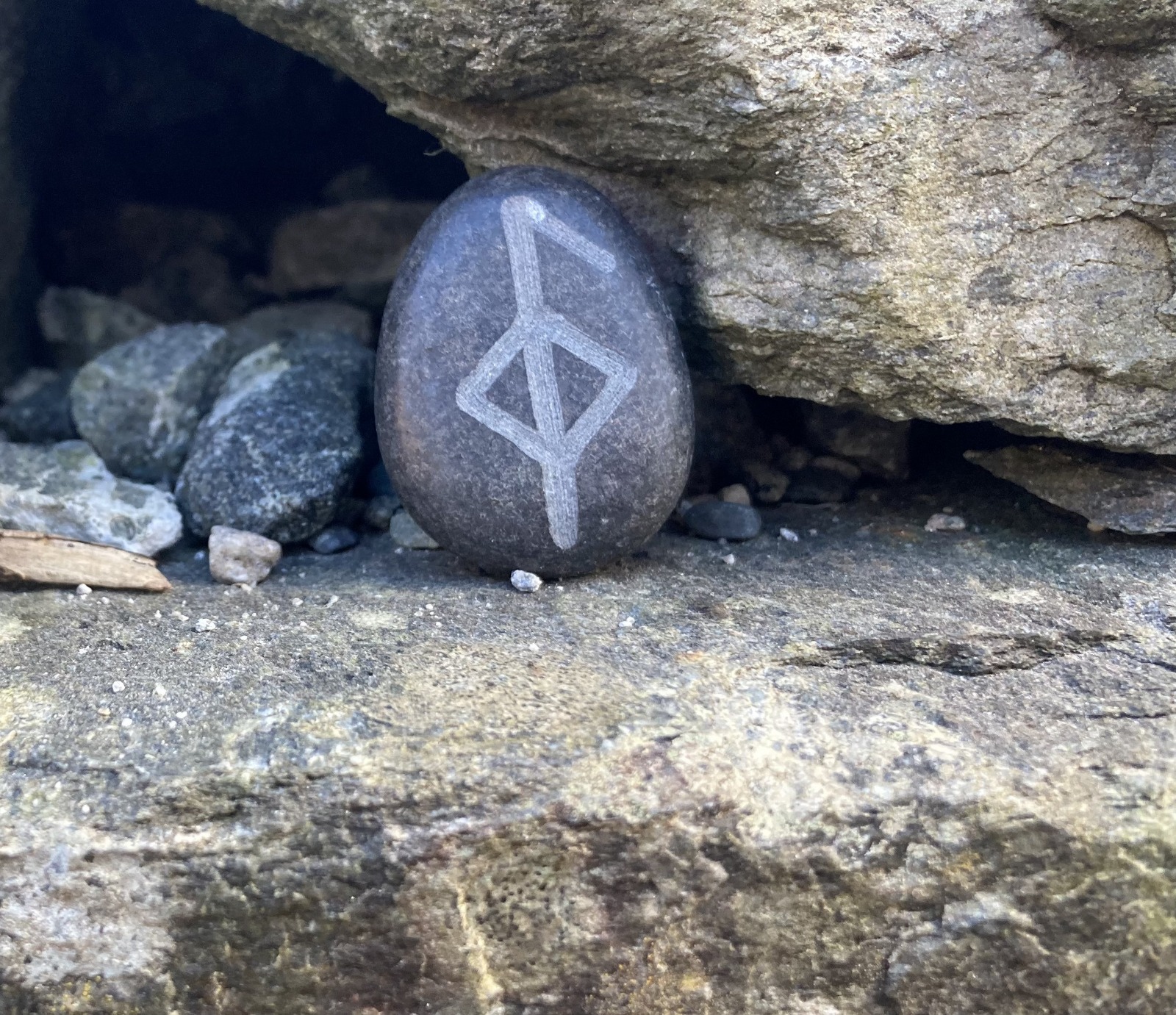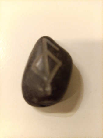 Lykkestein med binderune for "Helse". Håndgravert. Basert på historiske funn.