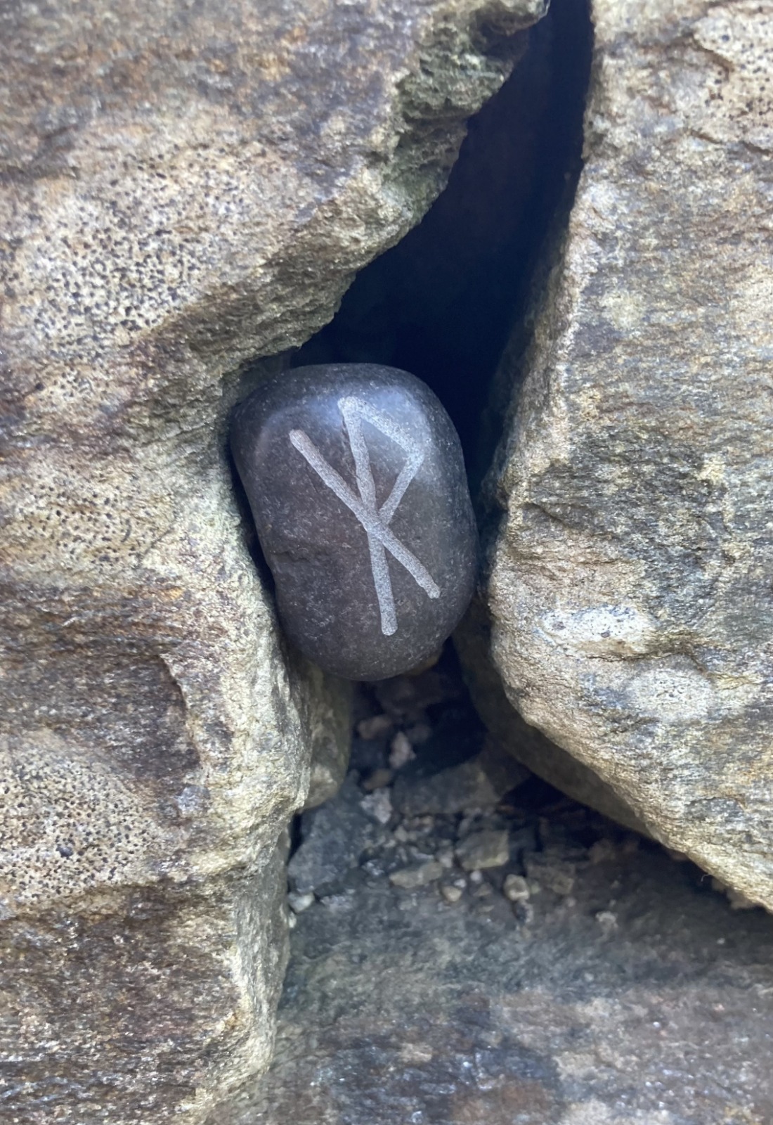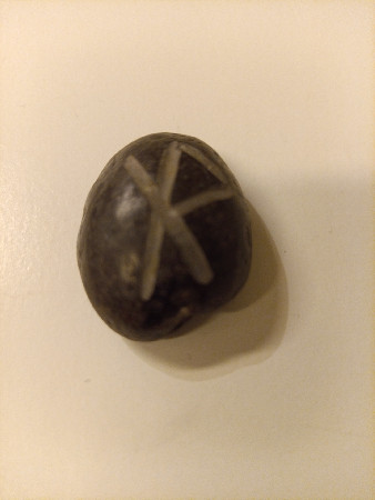 Lykkestein med binderune for "Trygg reise". Håndgravert. Basert på historiske funn.