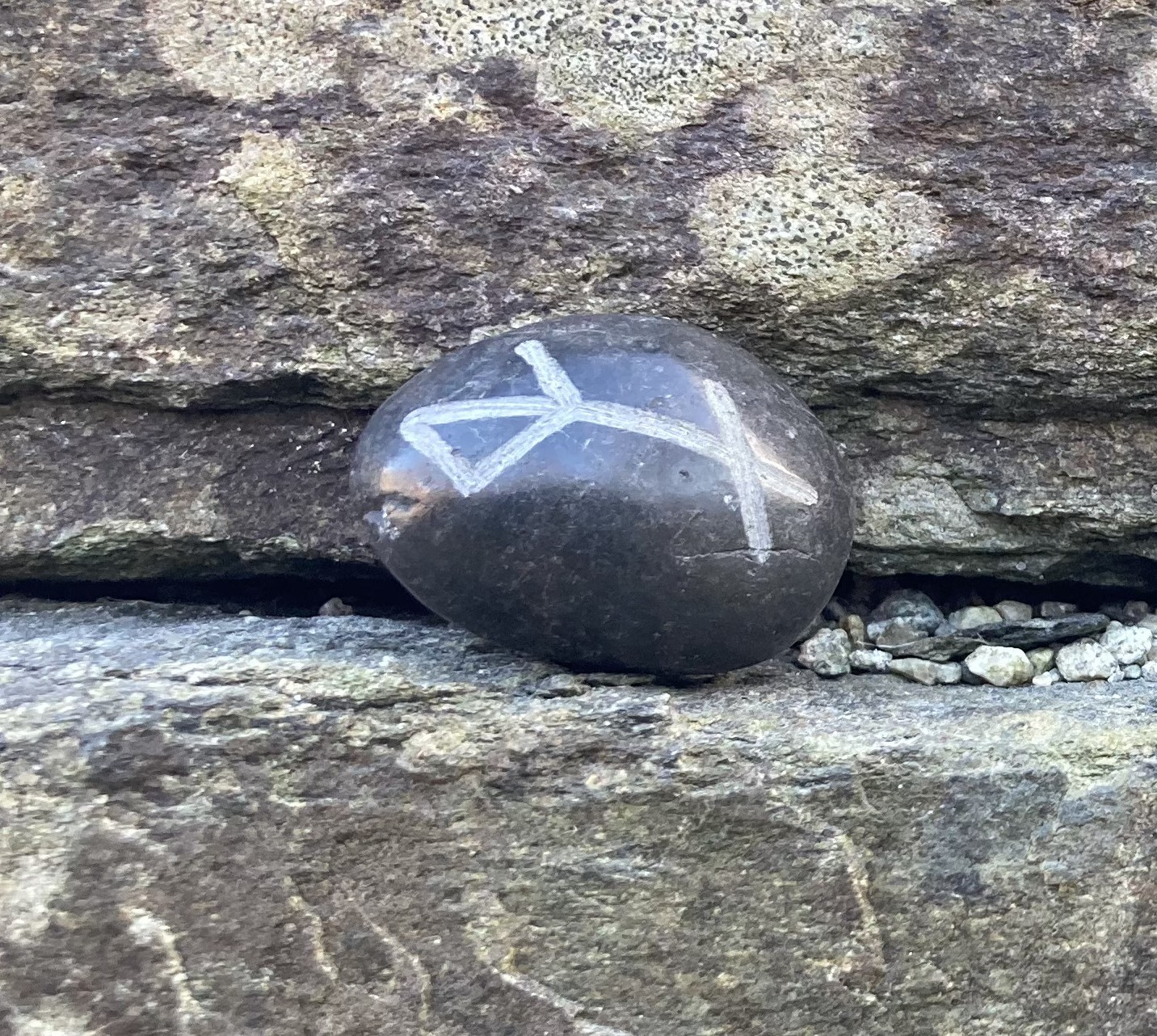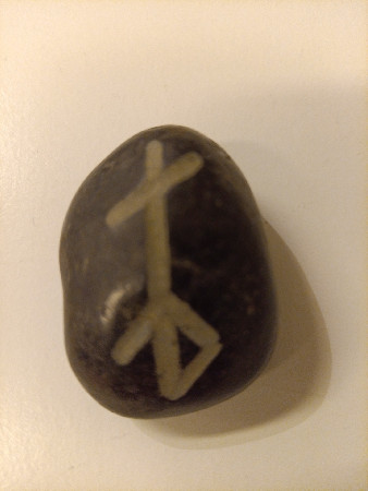 Lykkestein med binderune for "Ungdom". Håndgravert. Basert på historiske funn.