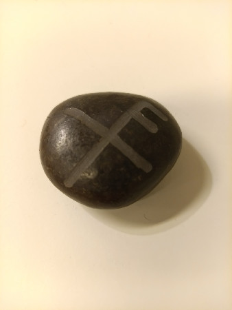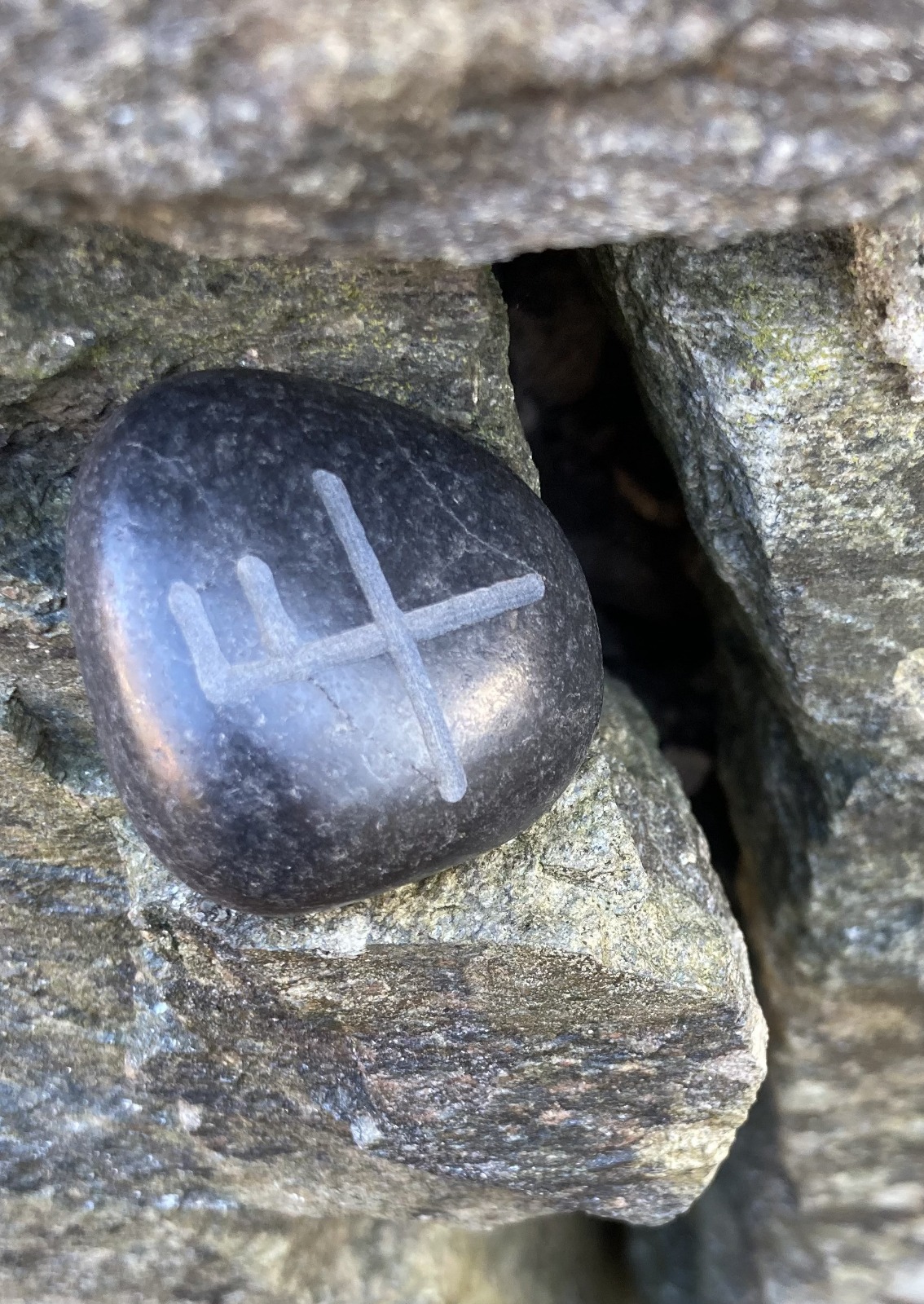 Lykkestein med binderune for "Hell og lykke". Håndgravert. Basert på historiske funn.