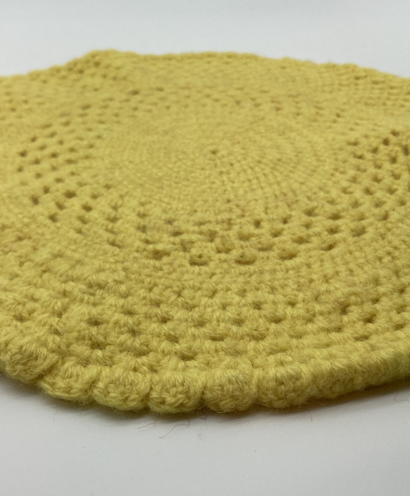Deilig heklet og tovet sitteunderlag i ull. Laget av Mamma B. NB! Potensiell bestillingsvare. Må forvente to ukers produksjonstid om det ikke finnes noen på lager.