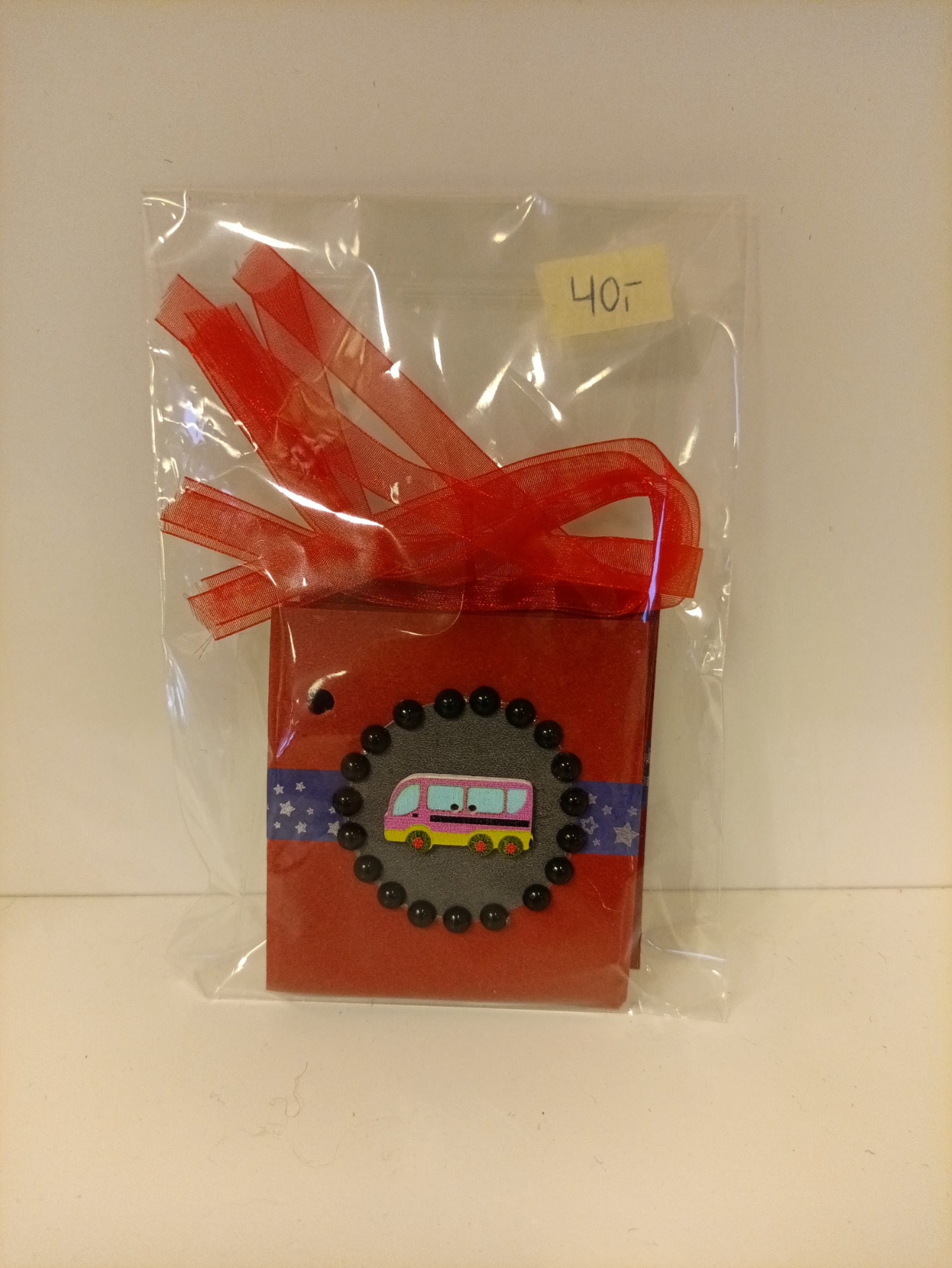 5 doble til-og-fra-lapper. Det er likt motiv på alle. Lite festebånd følger med. Lappene er 7,5x8 cm.